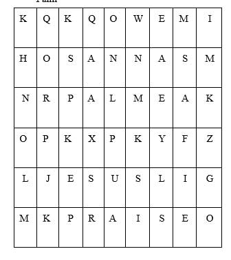 When is Hosanna? We celebrate Hosanna on the Sunday before Passover. Jesus was on his way to the temple of Jerusalem when he reached Bethpage at the Mount of Olives. He sent his disciples to bring a colt (a young donkey). The disciples found a colt that had never been ridden before. When they untied the colt, some people asked the disciples why they were taking it. They replied, as Jesus had told them, “The Lord needs it.” They laid their clothes on the donkey and Jesus sat on it and went to Jerusalem. The disciples, boys and girls spread flowers on the road. They cut branches from date palm trees and held them high and shouted, “Hosanna to the son of David, blessed is he who comes in the name of Lord, Hosanna in the highest”. This made the high priests upset. Jesus told them, “Haven’t you read that out of the mouth of babies and sucklings, you have ordained praise.” (Psalm 8:2) “If they keep quiet, stones will start shouting.”