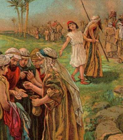 Joseph must have been scared and sad. He probably cried a lot. The brothers didn’t care. They sat down to eat. Suddenly, they saw a group of traders heading to Egypt. Judah, one of Joseph’s brothers, said, “What good will come from killing him? Let’s sell him to the traders instead. After all, he’s our brother.” The brothers agreed and sold Joseph to the traders for 20 pieces of silver. The traders took Joseph to Egypt.