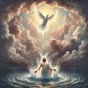 As soon as Jesus came up from the water, something incredible happened. The heavens opened up! The Holy Spirit came down like a beautiful dove and rested on Jesus. Then a loud, loving voice came from heaven. It was God the Father, and He said: “This is My Son, whom I love. With Him, I am well pleased.” At that moment, all three persons of the Trinity were present: