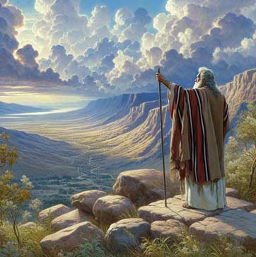 “Go up Mount Nebo, to the top of Pisgah. I will show you the land I promised to Abraham, Isaac, and Jacob.” God showed him the land of Canaan—the land He had promised to the Israelites.