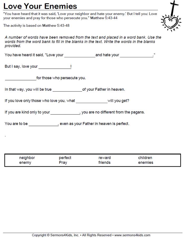 Are there any boys or girls that are mean to you at recess? Has anyone ever said something about you that was not true? Do you love those boys and girls? Should we really be expected to love people who are mean to us, treat us badly, and say ugly things about us?