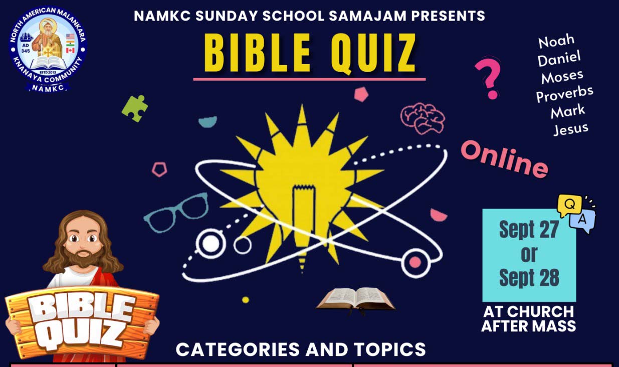 Upcoming Events BIBLE QUIZ – Sept 27 or Sept 28